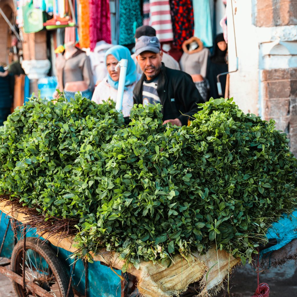 En la costa atlántica, Essaouira ofrece una lectura distinta del zoco de especias. Las mezclas aquí dialogan con pescados y mariscos: comino tostado, cilantro seco y pimentón ahumado aparecen con frecuencia. La ciudad, marcada por influencias bereberes, portuguesas y judías, presenta una despensa diversa y bien integrada a su gastronomía local.
