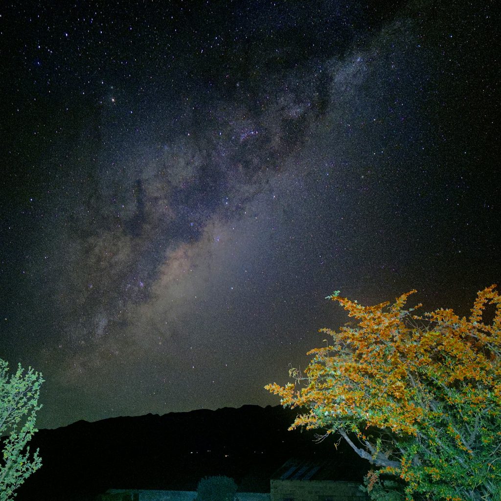 El contraste entre paisaje desértico y cielo infinito crea una atmósfera difícil de olvidar. Durante la noche, la Vía Láctea se despliega con una intensidad poco común en regiones urbanizadas.